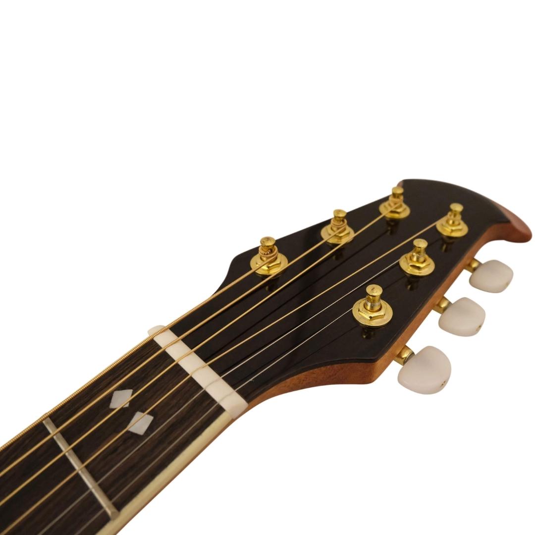 With the Santana OV-90 you get access to a classic American acoustic guitar design, which is especially prevalent among songwriters and folk guitarists, but which is also widely used in the power rock of the 70’s and 80’s. The design is based on the characteristic curved body, which is made of a plastic material on which a deck in spruce veneer is mounted. This construction method provides a guitar with a very harmonious and balanced sound, which is at the same time very comfortable and easy to play.