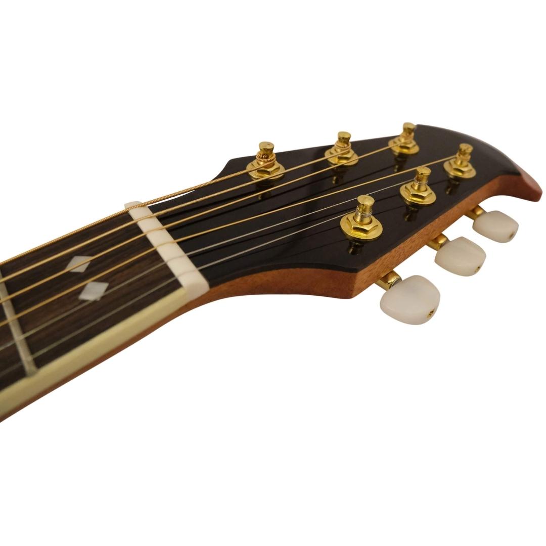 With the Santana OV-90 you get access to a classic American acoustic guitar design, which is especially prevalent among songwriters and folk guitarists, but which is also widely used in the power rock of the 70’s and 80’s. The design is based on the characteristic curved body, which is made of a plastic material on which a deck in spruce veneer is mounted. This construction method provides a guitar with a very harmonious and balanced sound, which is at the same time very comfortable and easy to play.