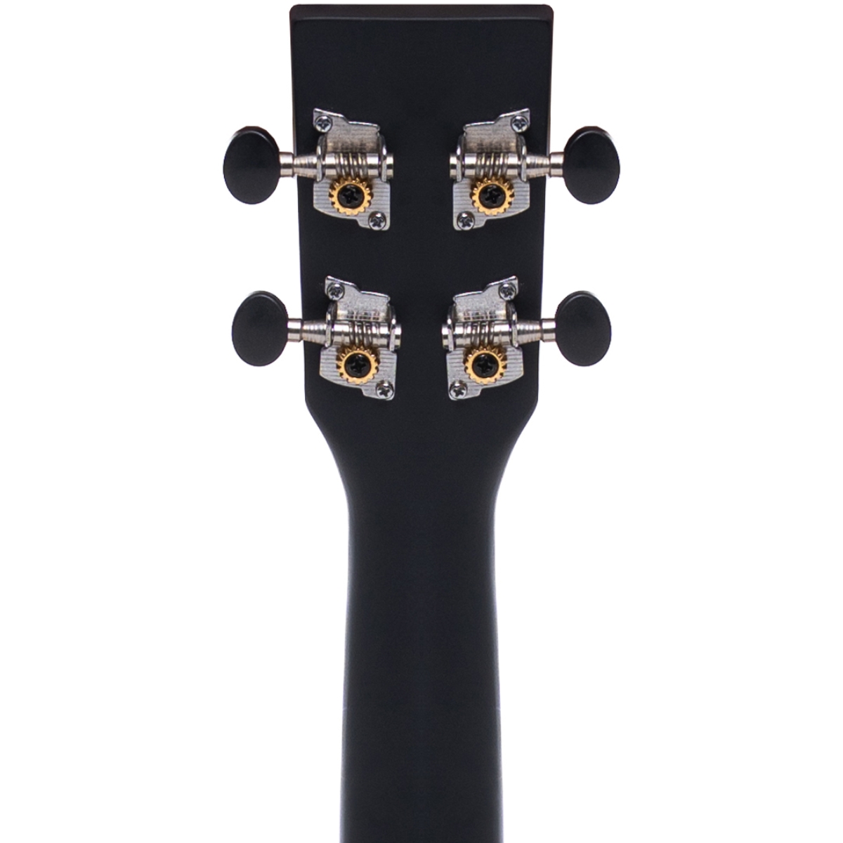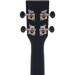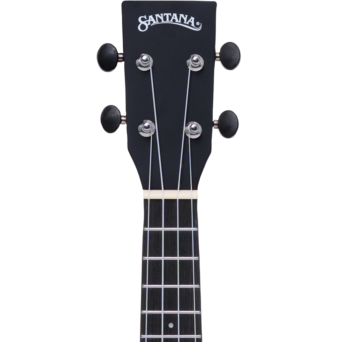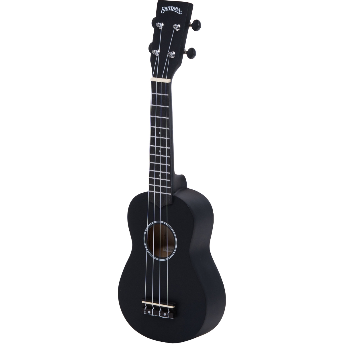 The maple neck, combined with a rosewood fingerboard and bridge, provides a smooth playing feel, while the chrome-plated tuning machines help keep tuning stable. The ukulele is supplied with a Santana gig bag, making transport and storage straightforward. A solid and affordable choice in a classic black finish.