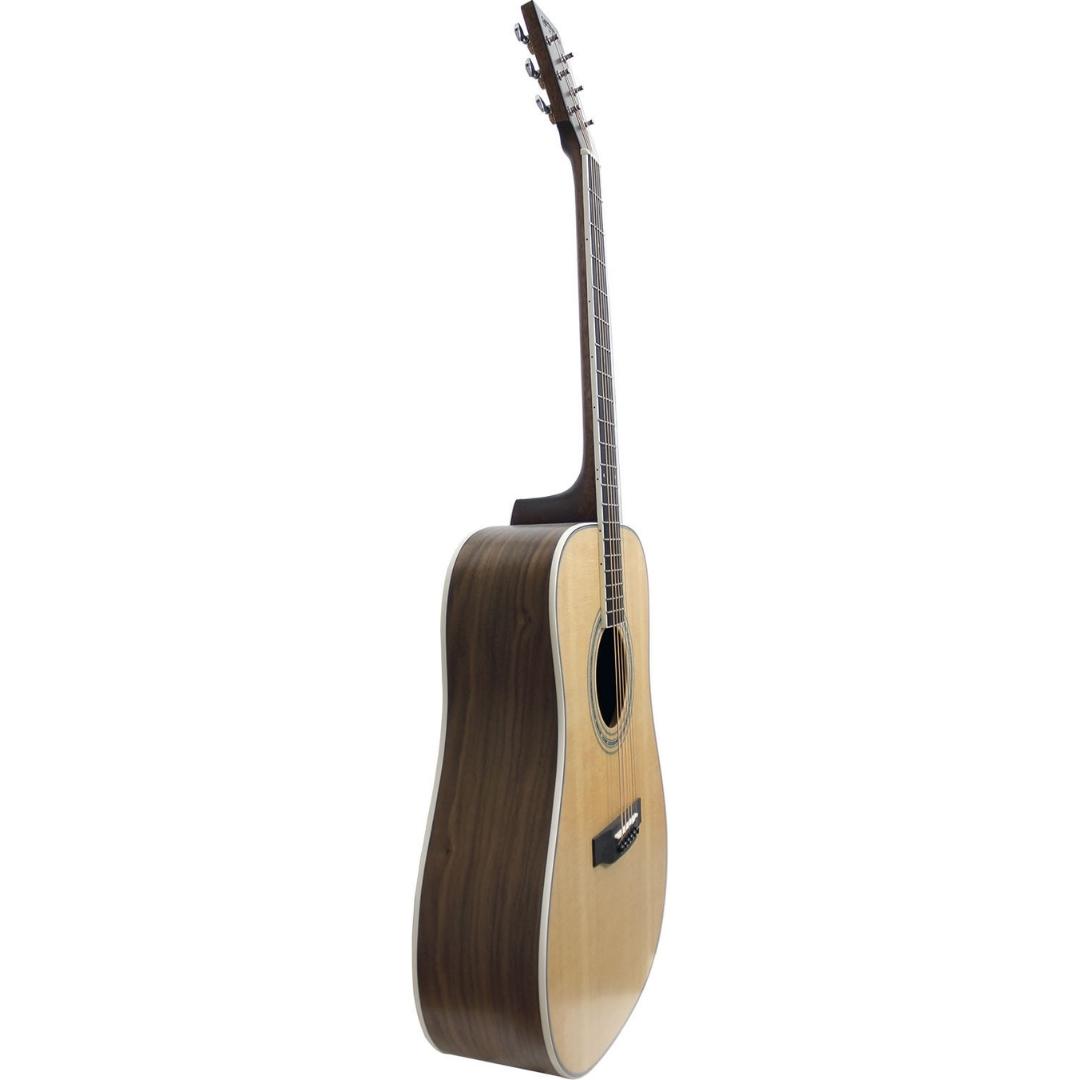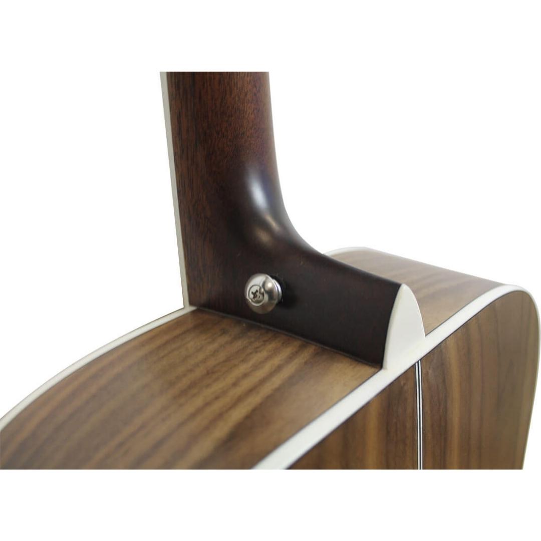 The ST-300WDS is built with a solid spruce deck and the back and sides are made of beautiful black walnut. The main advantage of using solid wood is that it is far more resonant, and thus has far better tone than a laminate guitar. In addition, many solid tonewoods (particularly spruce) improves over time as the wood dries out and becomes even more resonant. Black walnut is also a popular wood for guitars. Walnut’s tone is slightly warm, although it still has good sustain and bite. Besides the fact that walnut has a nice sound, it also looks great with almost all types of finishes.