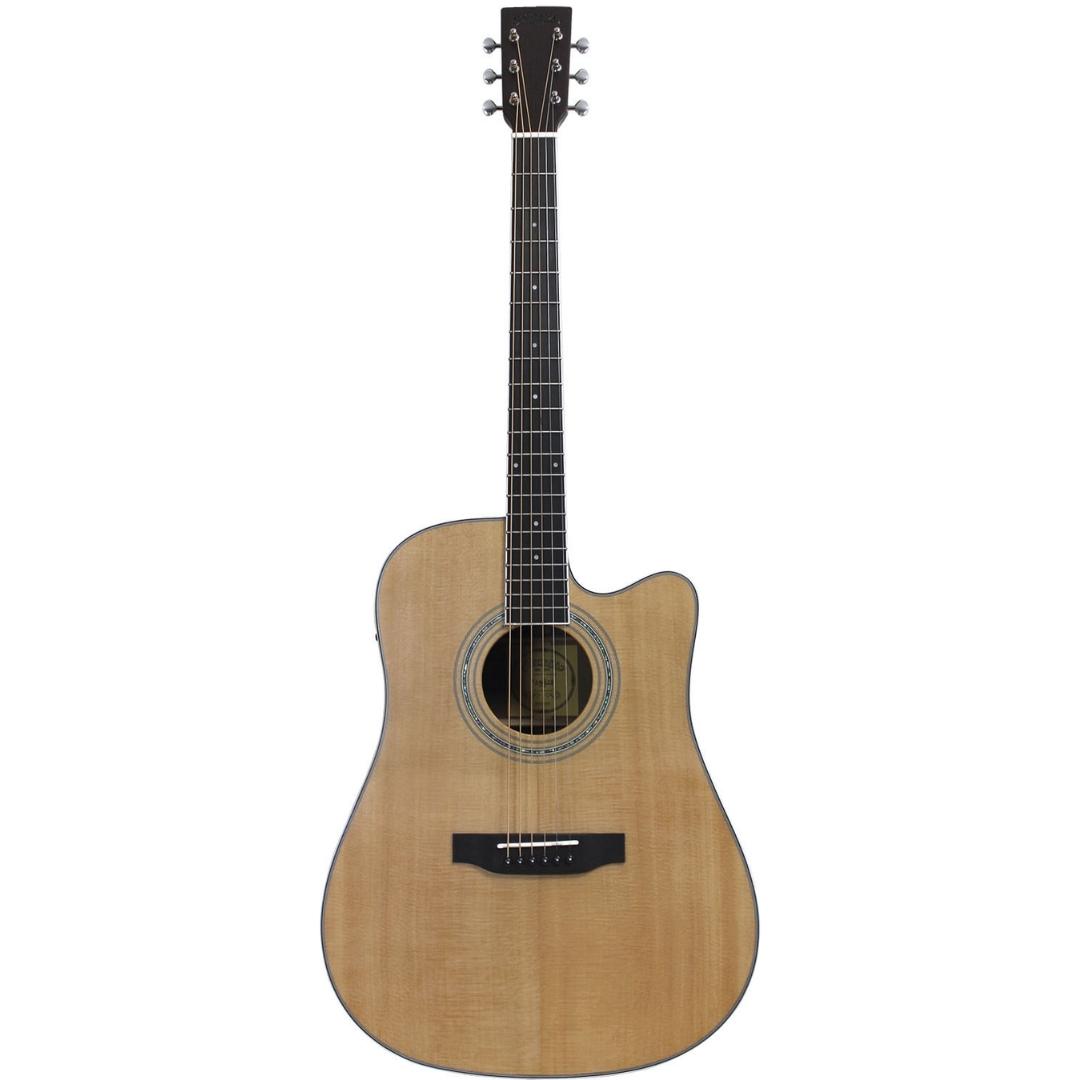 ST-300WS is a 6-string electric acoustic guitar with cutaway and a built-in Fishman Presys microphone system. The cutaway gives you easy access to the high note. And the microphone system offers you the opportunity to plug the guitar directly into an amp or recording devices.