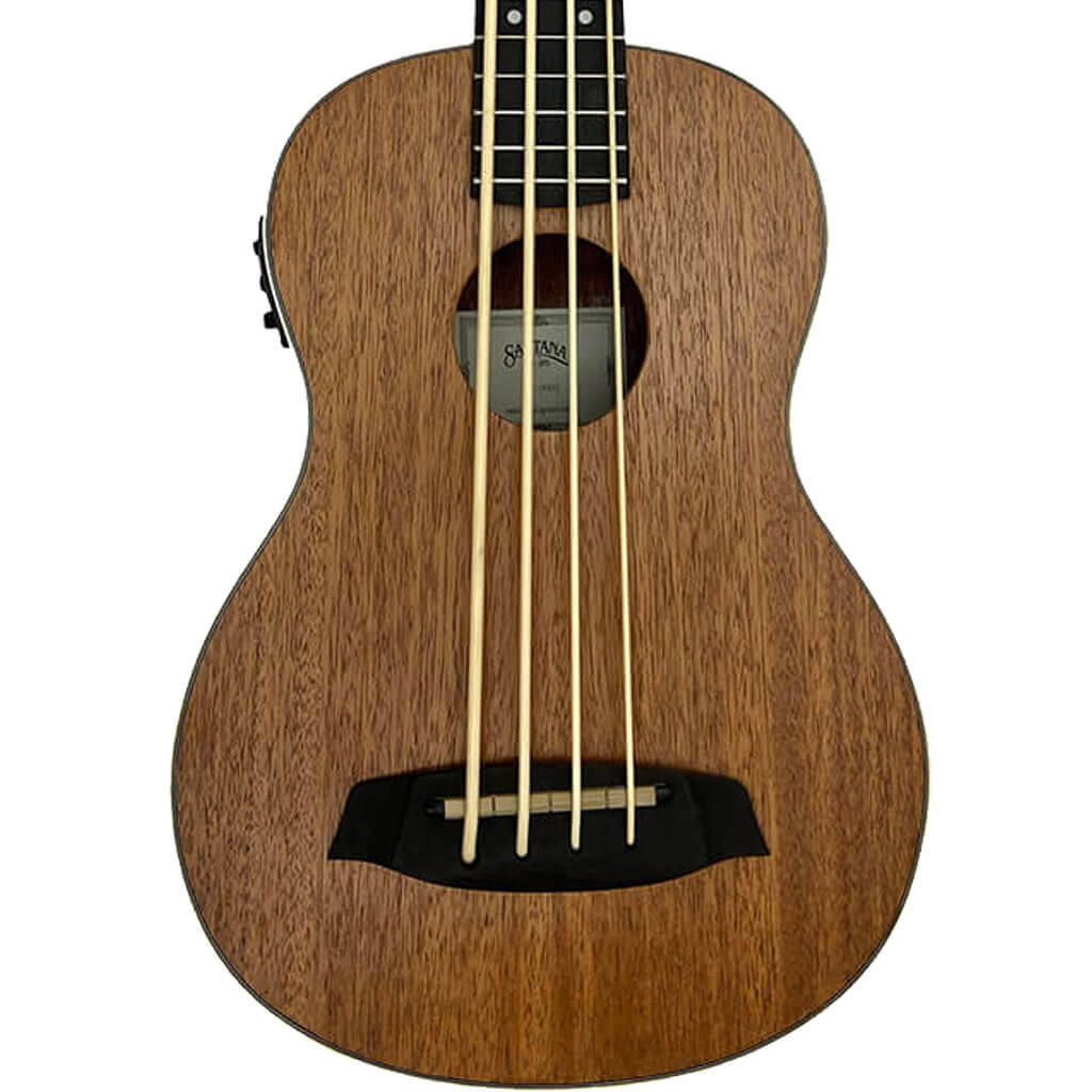 This Santana bass ukulele is designed in Denmark, has a built-in pickup and is made from mahogany.
